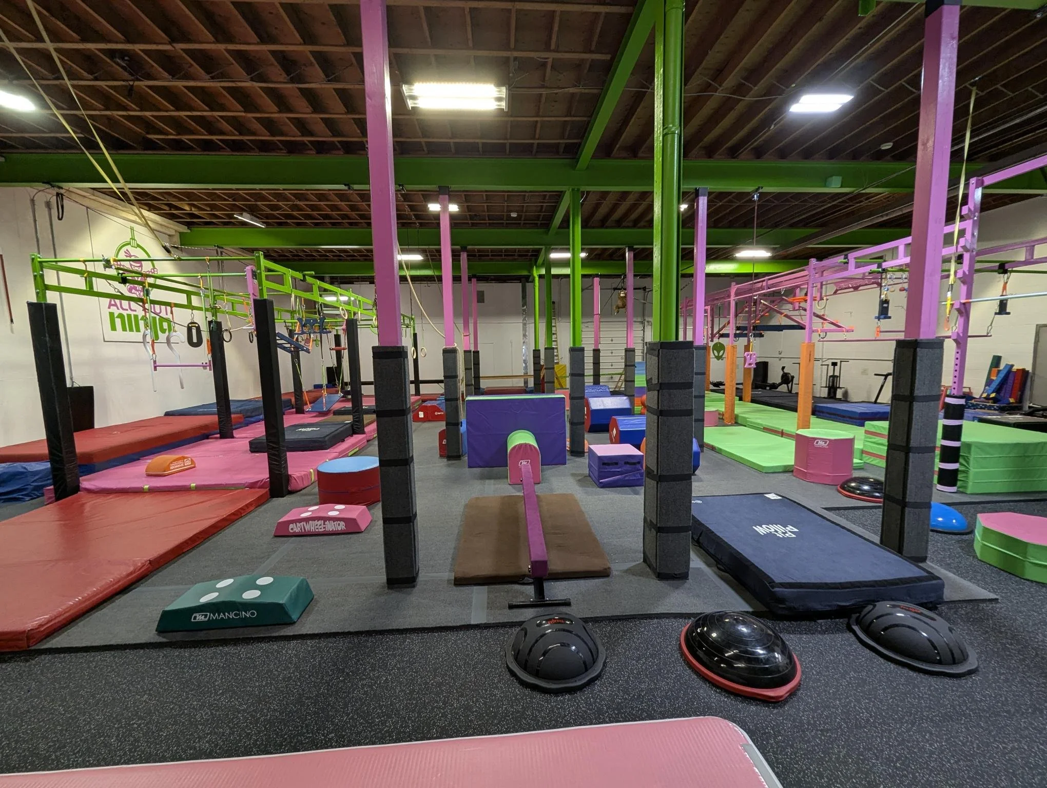 Our classes are designed to help kids move with purpose, and build confidence. With two separate gym spaces, we’re able to give every age group the attention they need. Our younger kids (under 4) have their own dedicated space to explore and grow, while kids 4 and up train in our main gym with age-appropriate challenges. It’s all about creating a positive experience where kids stay active, engaged, and excited to come back.